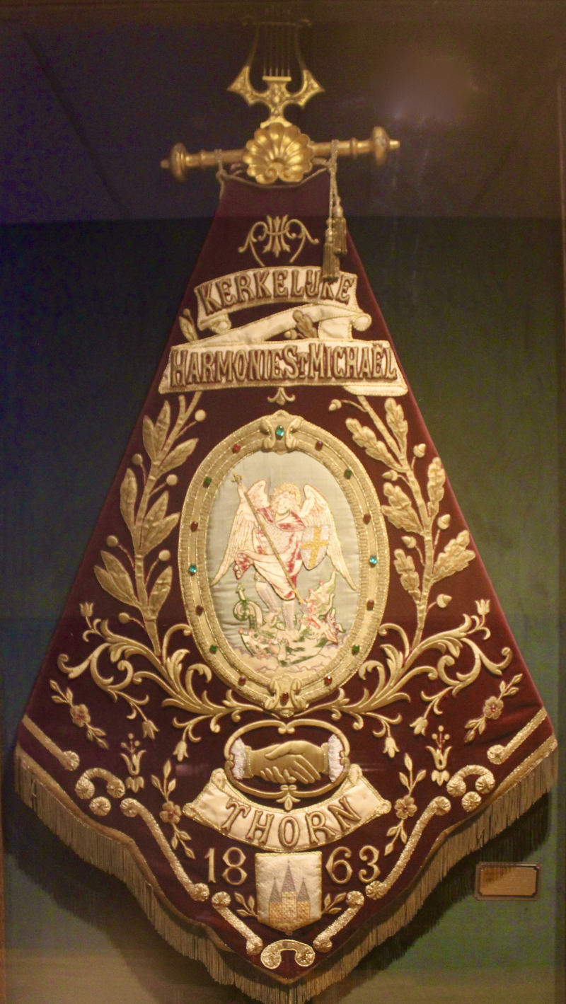 Dit is de tweede drapeau van de vereniging. Bij het zestigjarig bestaan van de vereniging liet een commissie van Antwerpse vrienden en oudleden een nieuwe drapeau vervaardigen in Antwerpen. Deze drapeau werd op 9 juni 1923 aangeboden en ingezegend door pastoor Wouters en was tot 1965 in gebruik. In opdracht van de vrienden van Harmonie St. Michaël werd deze gerestaureerd door Mevrouw T. Timmermans-Van den Berk en opnieuw aangeboden. Sindsdien hangt de drapeau beschermd in een vitrinekast in Café D'n Ingel in Thorn.