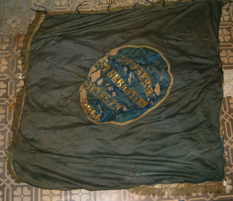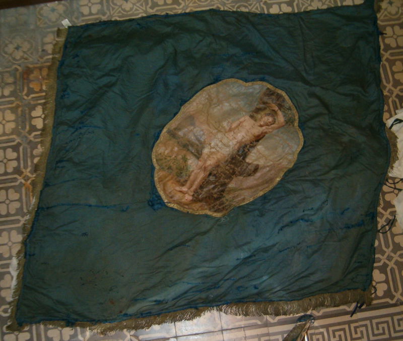 In 2008 zijn de twee vaandelmedaillons uit het doek gehaald. Het schilderij trok namelijk altijd scheef en met vouwen, terwijl het doek oud en vaal was, met veel herstelwerk, verschoten en duidelijk een onderdoek, waarop een betere dunne zijden stof had gezeten.