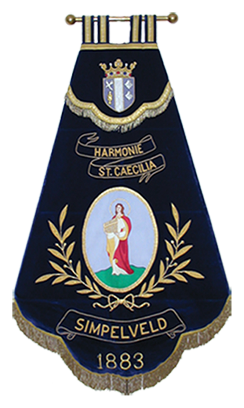 "Door het bestuur (harmonie St. Cecilia) werd besloten om over te gaan tot de aankoop van een nieuw vaandel. De Zusters van het Arme Kind Jezus, die ter plaatse in, Huize Loreto een wijd en zijd bekend borduuratelier hebben, zijn bereid gevonden om de nieuwe drapeau, die gelijk zal zijn aan de oude, echter thans in blauwe kleur, in hun atelier te vervaardigen".