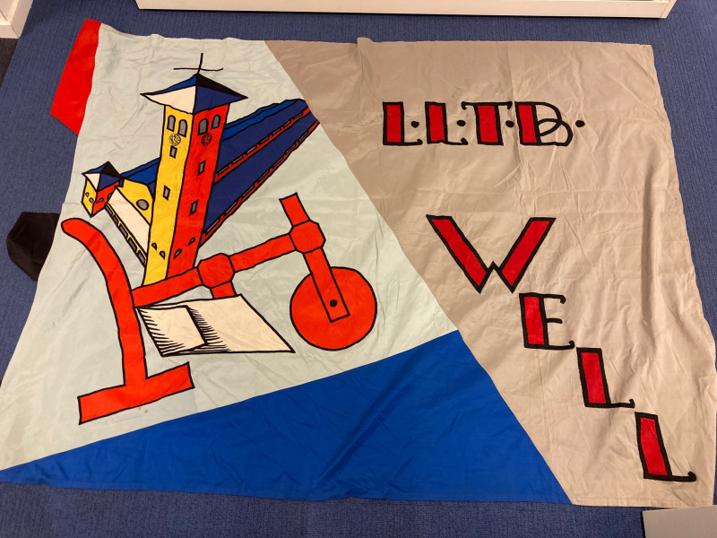 De St. Vituskerk in Well is tussen 1956 en 1958 gebouwd, het vaandel moet dus van jongere datum zijn.