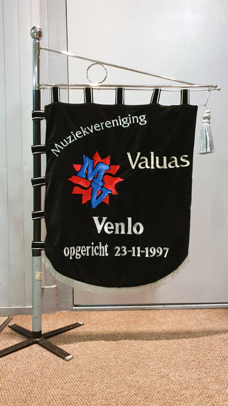 Het vaandel is van de gehele Muziekvereniging Valuas en dient zodoende ook voor zowel de brassband als de percussiongroep.