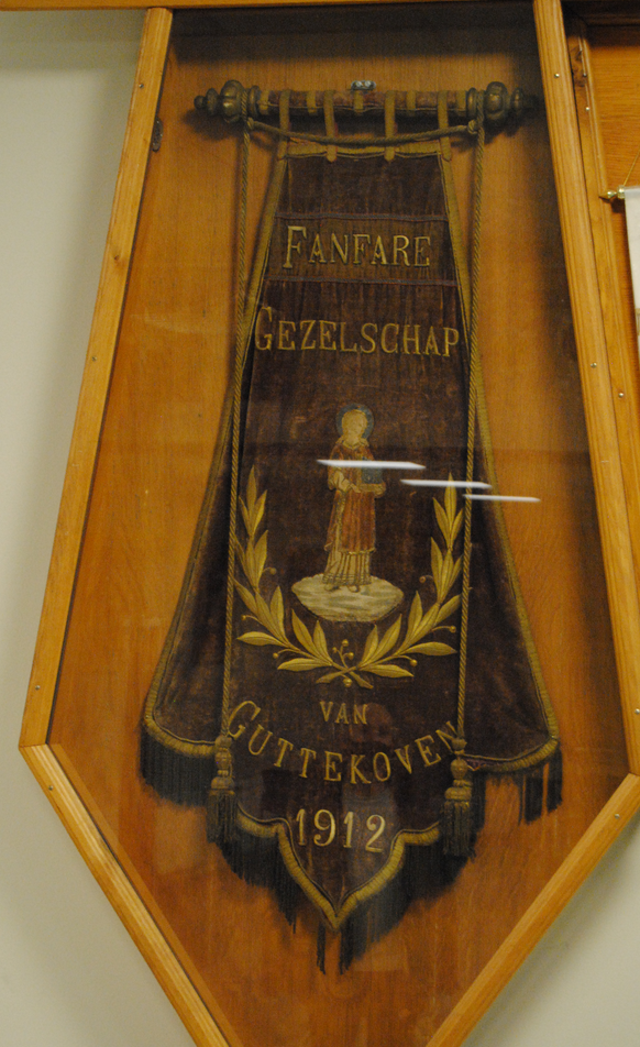 Een afbeelding van de Heilige Sint Caecilia in volle lengte. Ze draagt in haar handen een orgeltje.