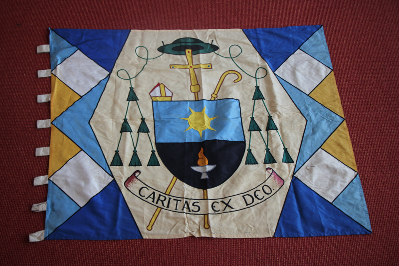 Dit vaandel diende kennelijk ter identificatie van het Limburgse contingent in de landelijke Lourdes-bedevaarten; mogelijk meegevoerd als de bisschop persoonlijk de bedevaart begeleidde. In het huis voor de Pelgrim bevinden zich diocesane vaandels van de andere Nederlandse bisdommen, alsook een vaandel met het wapen van mgr. Lemmens, eerdere bisschop van Roermond. Er is in de collectie van het Huis voor de Pegrim geen afzonderlijke vlag van het bisdom Roermond, vermoedelijk omdat de Limburgse Bedevaart de diocesane bedevaart van het bisdom Roermond was (en strikt genomen) nog steeds is. Het was dus duidelijk dat Limburg en het bisdom Roermond één waren. Daarom waren er alleen identificerende vlaggen nodig voor groepen uit andere bisdommen.