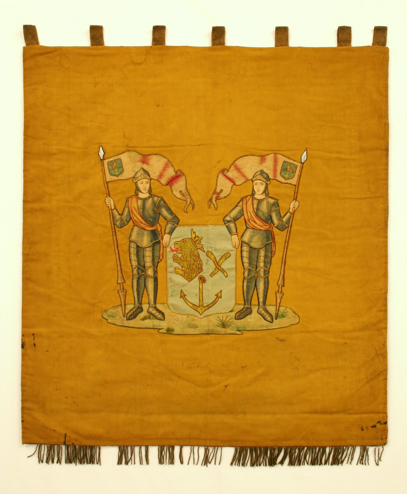 Keerzijde: Het gemeentewapen van Venlo op goud doek.