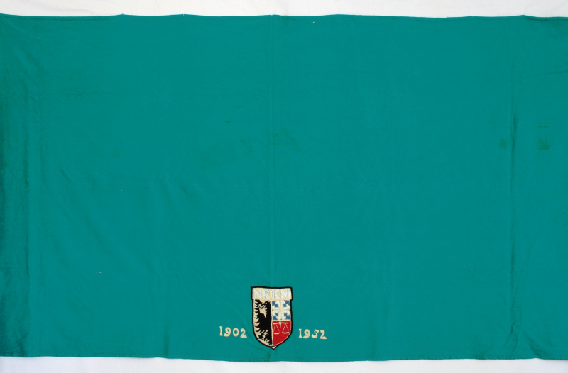 Groot veld met onderaan, centraal geplaatste jaartallen en wapenschild.